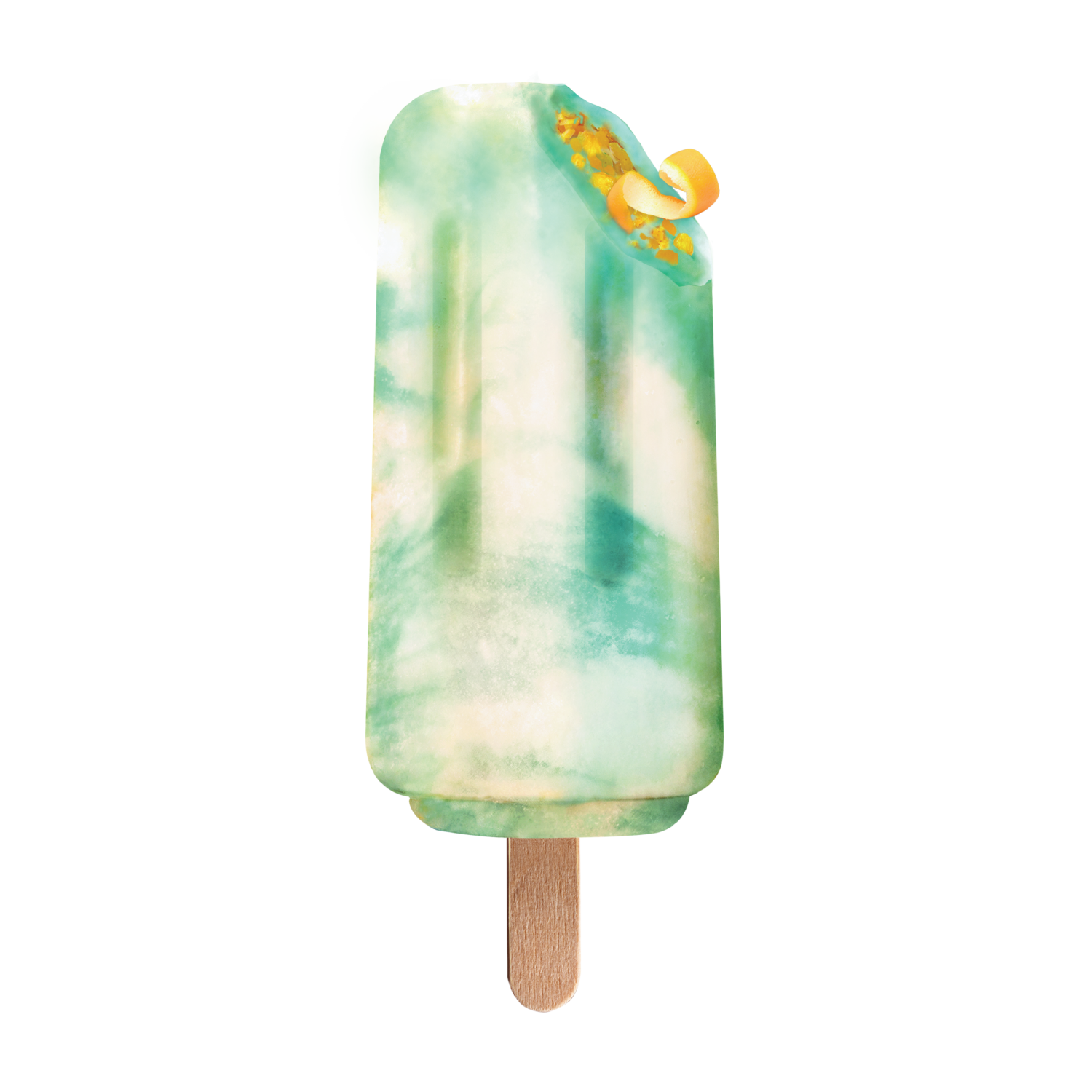 Refreshing soda milk bar with tangy orange bites!